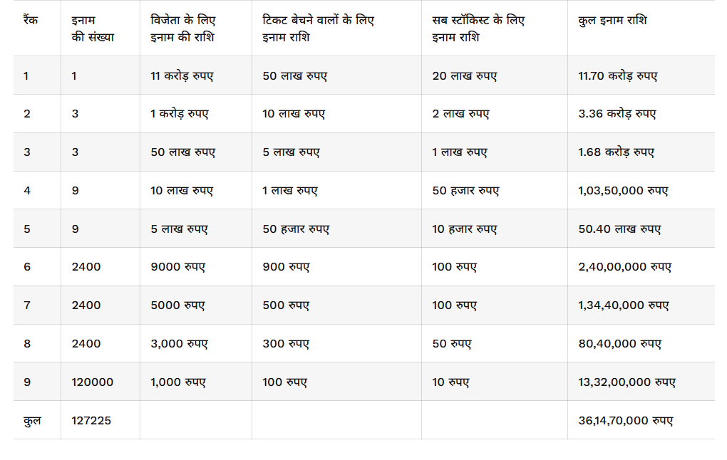 इस बार पंजाब स्टेट दीवाली बंपर लॉटरी में 11 करोड़ रुपए तक का मेगा प्राइज रखा गया है। कुल 127,225 इनाम दिए जाएंगे, जिनकी कुल राशि लगभग 36.14 करोड़ रुपए है। यहां देखें पुरस्कारों की संक्षिप्त जानकारी...
